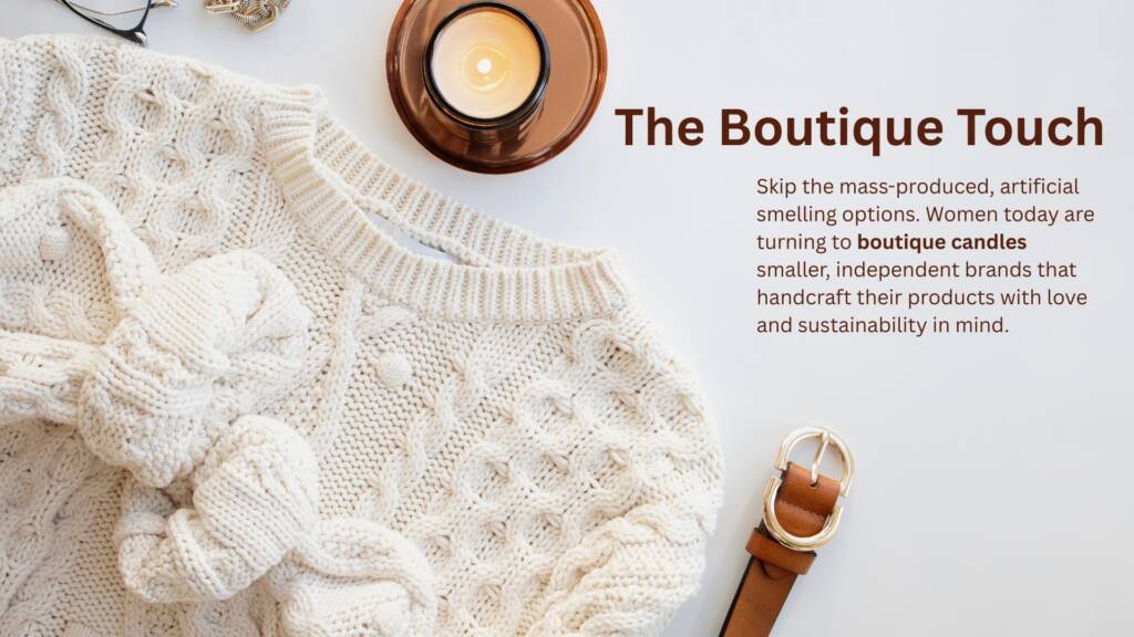 Skip the mass-produced, artificial-smelling options. Women today are turning to boutique candles—smaller, independent brands that handcraft their products with love and sustainability in mind. These candles often feature soy wax, natural essential oils, and eco-friendly packaging, aligning with modern values and wellness goals.