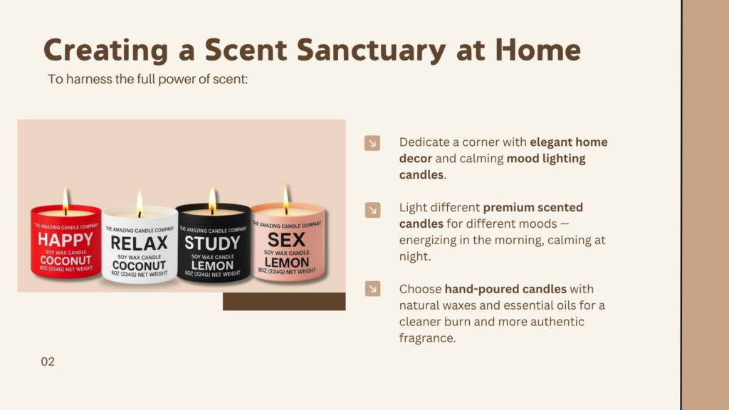 Whether you’re designing a peaceful reading nook, a romantic evening setup, or a mindful workspace, the right scent can transport you.